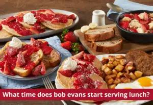 When Does Bob Evans Start Lunch. Most of the bob evans restaurant starts serving their breakfast items at 7 in the morning throughout the week. 730 calories, 27.5 g fat (9 g saturated fat, 0.5 g trans fat), 2,330 mg sodium, 100.